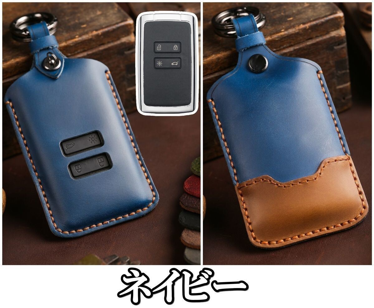 - 即決新品 ルノー ネイビー 本革 レザー キーケース キーカバー メガーヌ カジャー キャプチャー コレオス ルーテシア アルカナ