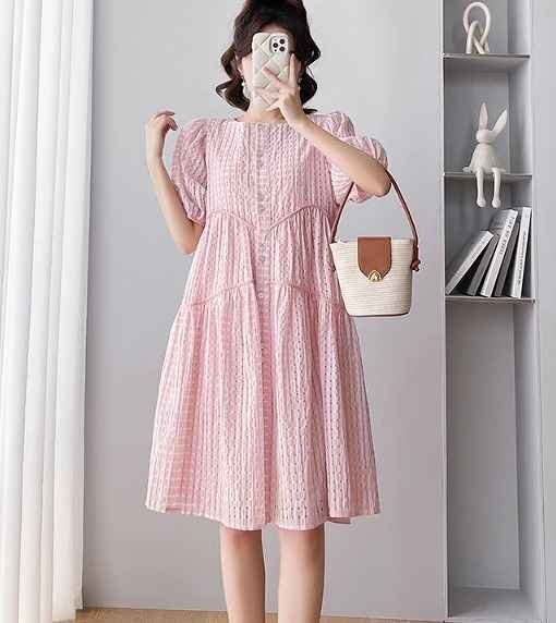 - 半袖ワンピース フリル 切り替え 体型カバー 着痩せ 【大きいサイズあり】 sweet系 2XL ピンク