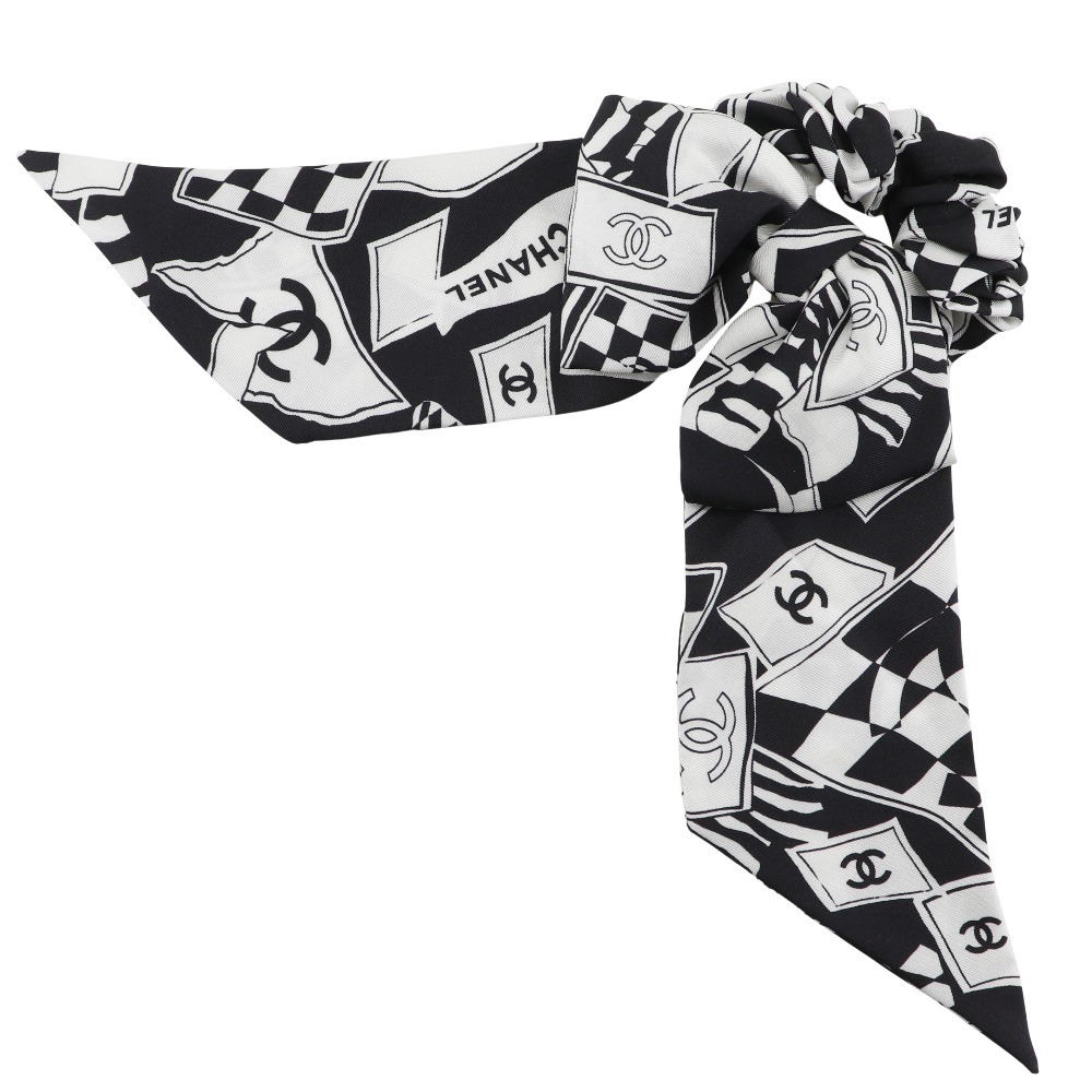 - CHANEL シャネル シュシュ ココマーク ロゴ リボン その他アクセサリー シルク 黒/白 レディース【I171625041】中古