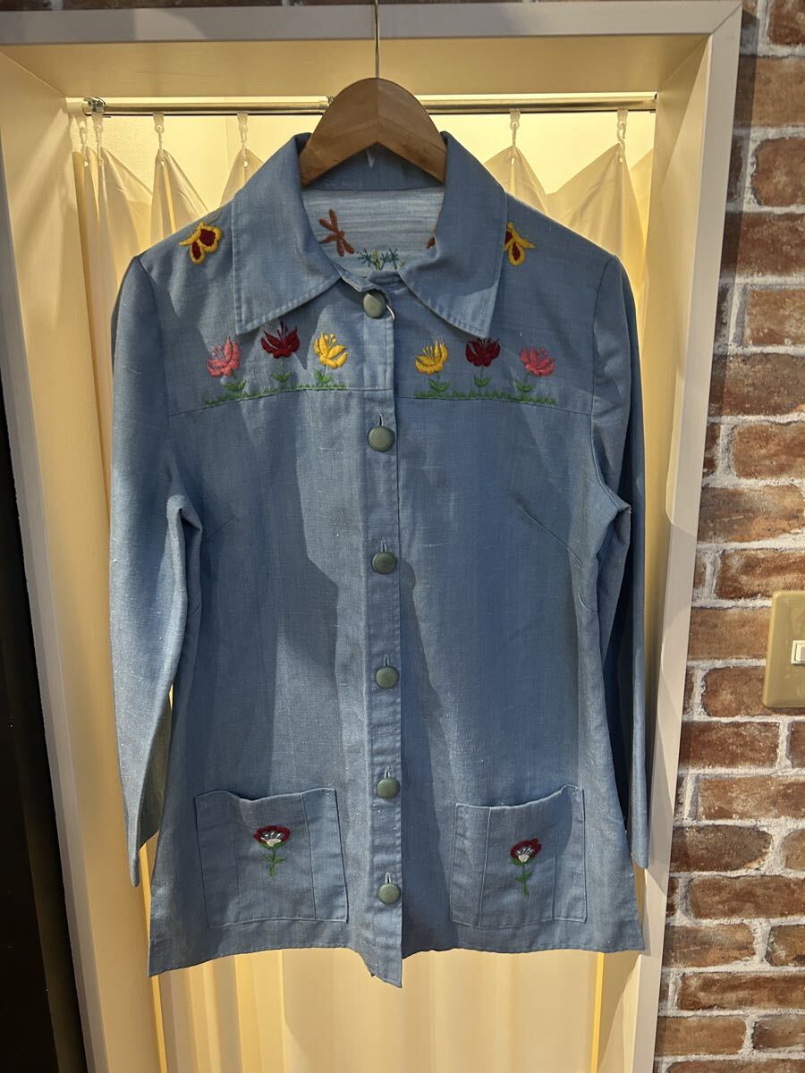 - Y-149 デニムコート カバーオール 花柄刺繍 長袖 インディゴ ブルー系 薄手