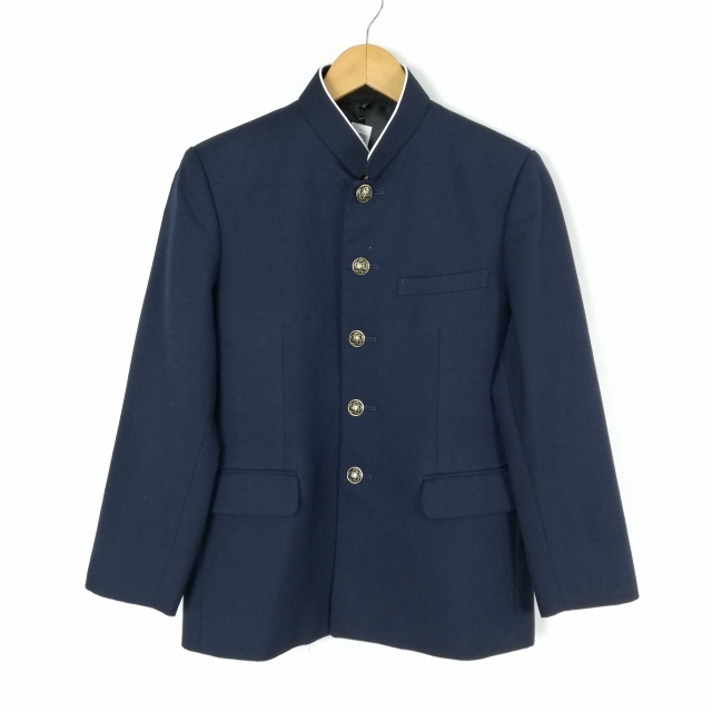 - 学生服 学ラン 160A 男子 上着 丸洗い可 ウール混 学校指定制服 ラウンドカラー サージ 紺 中古 ランクC a3 JJ6150