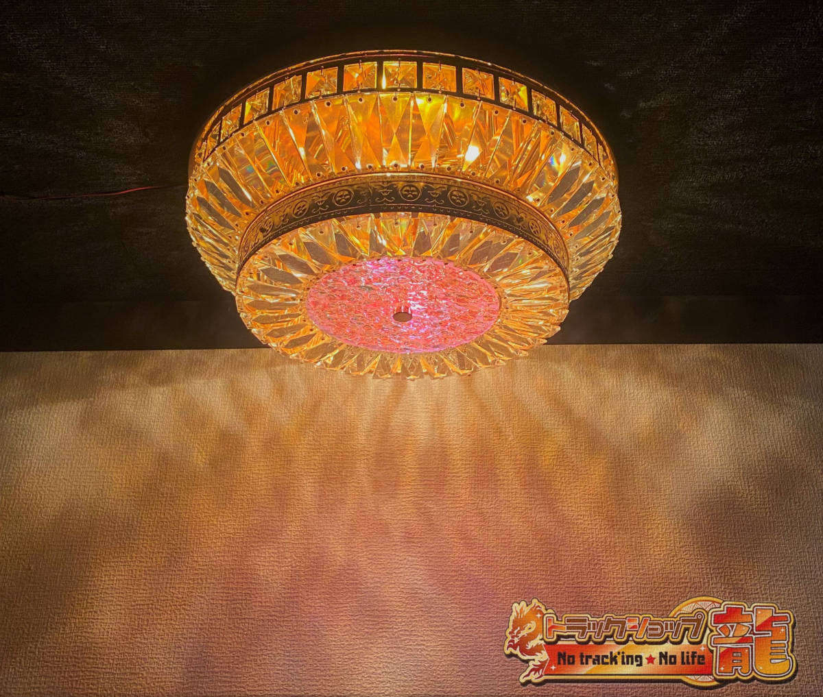 > 新品 Φ40cm オーロラ 天吊り シャンデリア フルゴールドメッキ クリスタルビーズ デコトラ 車内照明 トラック部品パーツ 金華山 C0638S