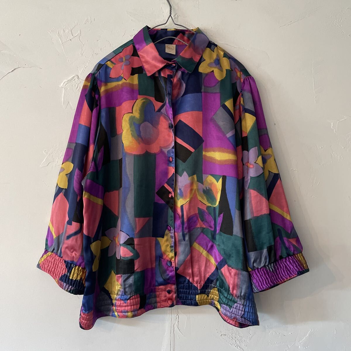 - ビンテージ ユーロ古着 花柄 長袖シャツ 5 ヴィンテージ レディース 総柄 ヨーロッパ ブラウス トップス ブルゾン サイケデリック 80s