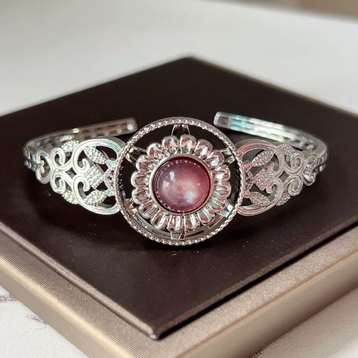 > ◇パープルマイカ◇バングル◇キャッツアイ効果◇パワーストーン◇天然石◇巾着袋付き◇プレゼントにも040G92521