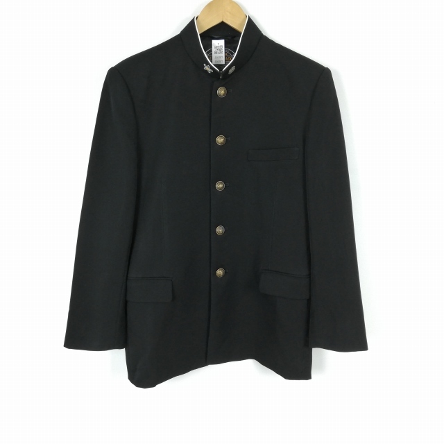 - 学生服 学ラン 男子 上着 学校指定制服 ラウンドカラー カシドス 黒 中古 ランクC a3 JJ6187