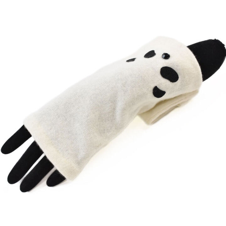 - 手袋 指なし レディース アンテプリマ ブランド ウール カシミヤ混 アニマル パンダ 白 オフホワイト 21~22cm