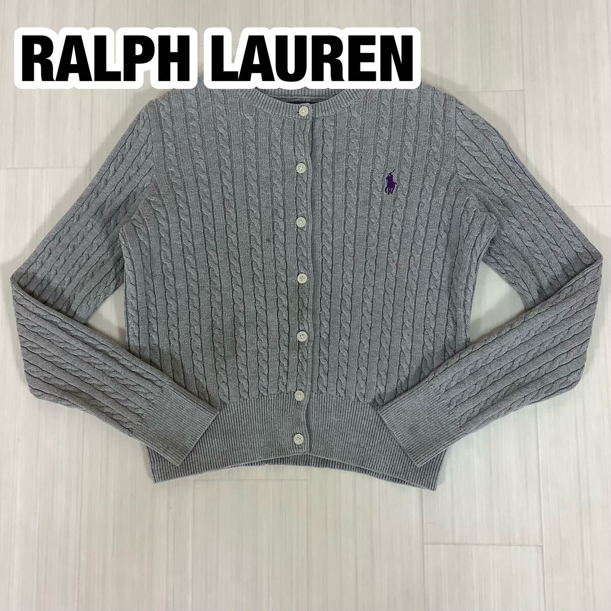 > POLO RALPH LAUREN ポロラルフローレン ケーブルニット カーディガン コットン S(7) 130cm グレー 刺繍ポニー