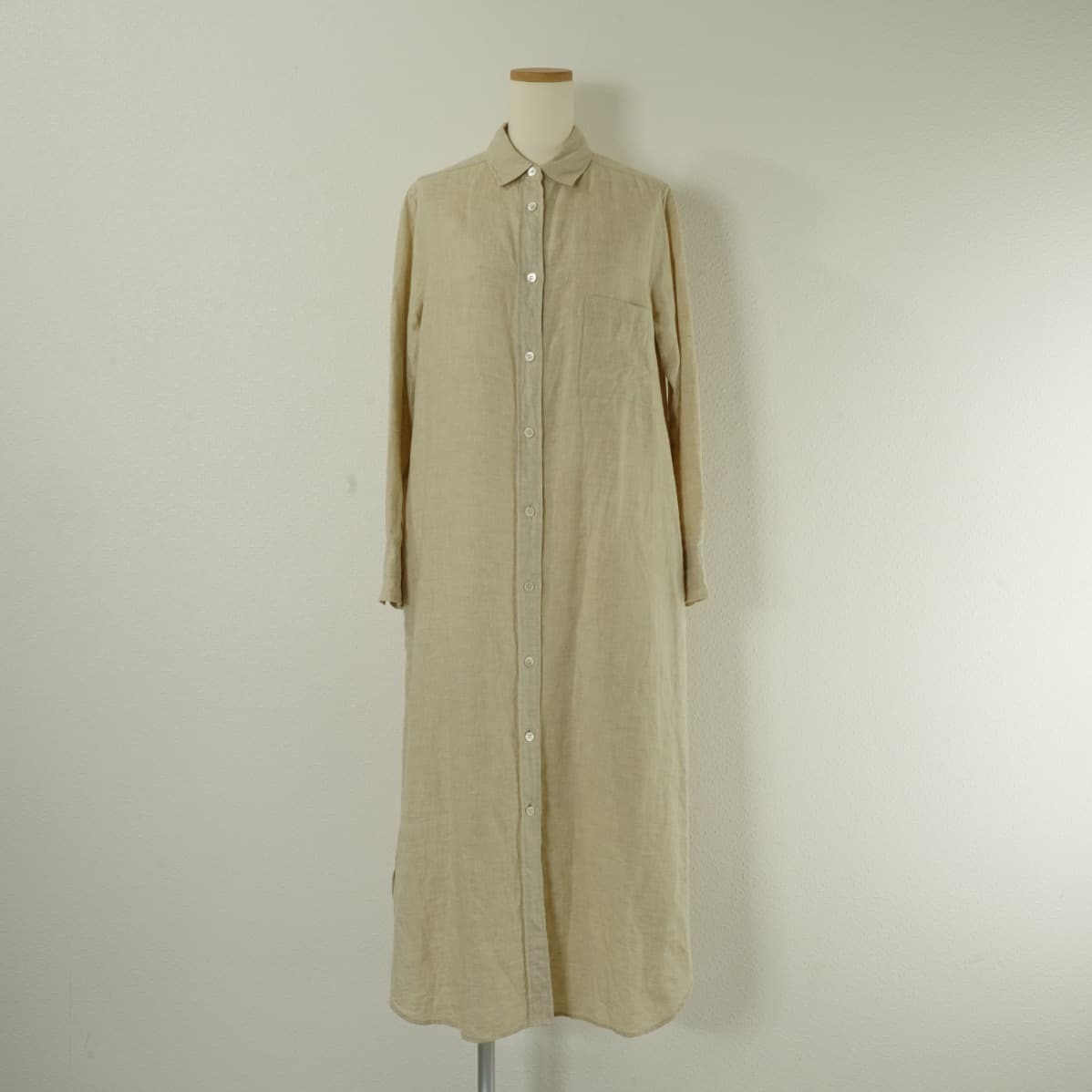 コメント:裾にかけて広がるフレアシルエットのシャツワンピース。 天然素材ならではのナチュラルな表情で、サイドに深めにスリットのデザインです。