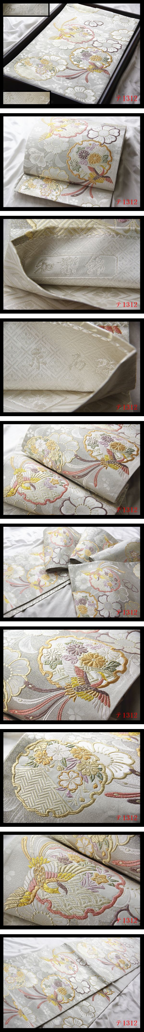 - 蔵【テ1312】西陣逸品 振袖可 和楽錦 雪輪鳳凰古典紋 清雅な華やぎ 正絹純金糸六通高級美術袋帯 ◇検◇簪着物名古屋帯和装小物帯締め