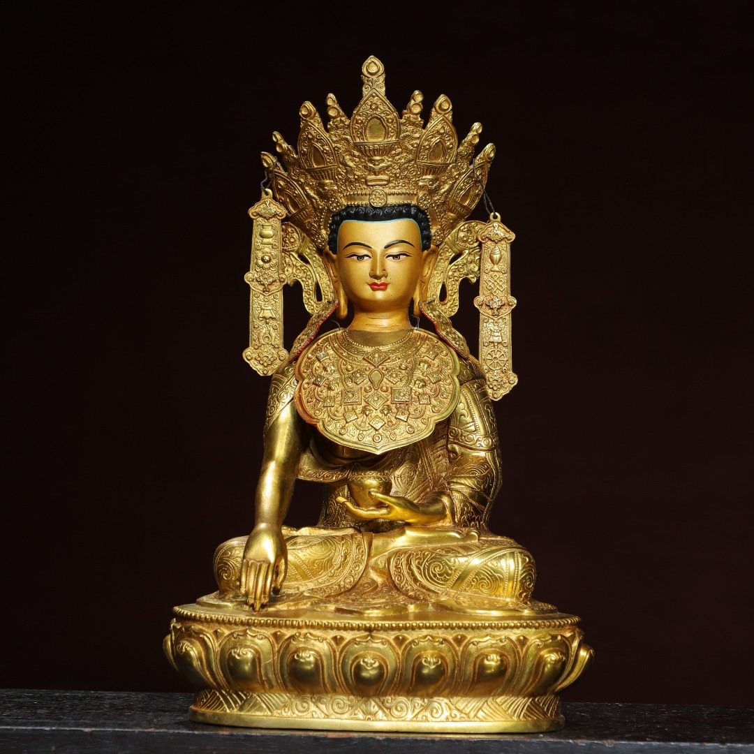 - 精品収蔵 古銅塗金 描彩 覺悟佛 仏像 造像 佛 仏教 宗教密教 招財 鎮宅 家蔵珍品 時代物 古董品 骨董 旧家蔵出し 唐物 中国古玩 古美術品