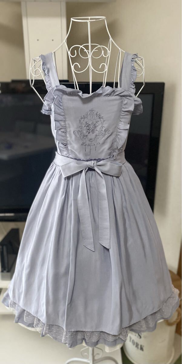 > 未使用品近いaxes femmePOETIQUE メルヘン刺繍フリルワンピース 水色