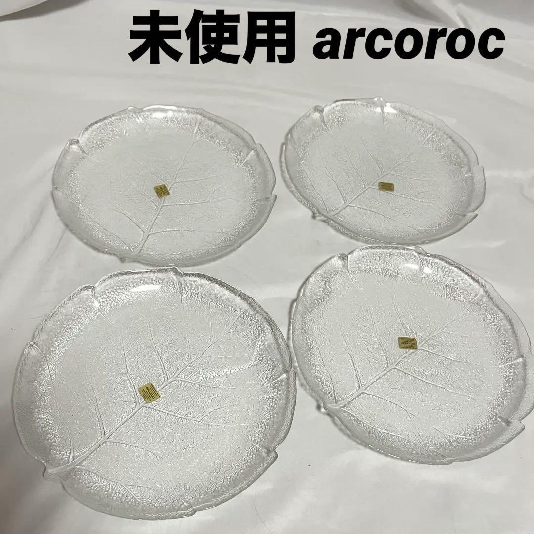 - 未使用 アルコロック フランス製 リーフデザイン 強化耐熱ガラスプレート 4枚 arcoroc