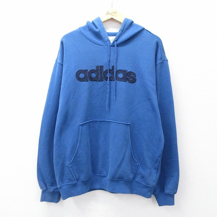 - XL/古着 アディダス adidas 長袖 スウェット パーカー メンズ 00s ビッグロゴ 青 ブルー 25sep04 中古 スエット トレーナー トップス