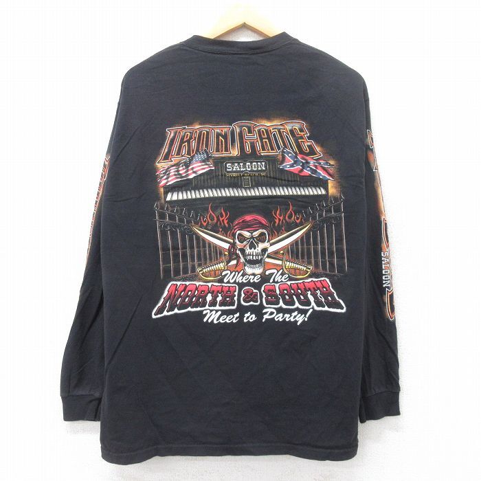 - L/古着 長袖 ビンテージ Tシャツ メンズ 00s IRON GATE スカル コットン クルーネック 黒 ブラック 25aug29 中古