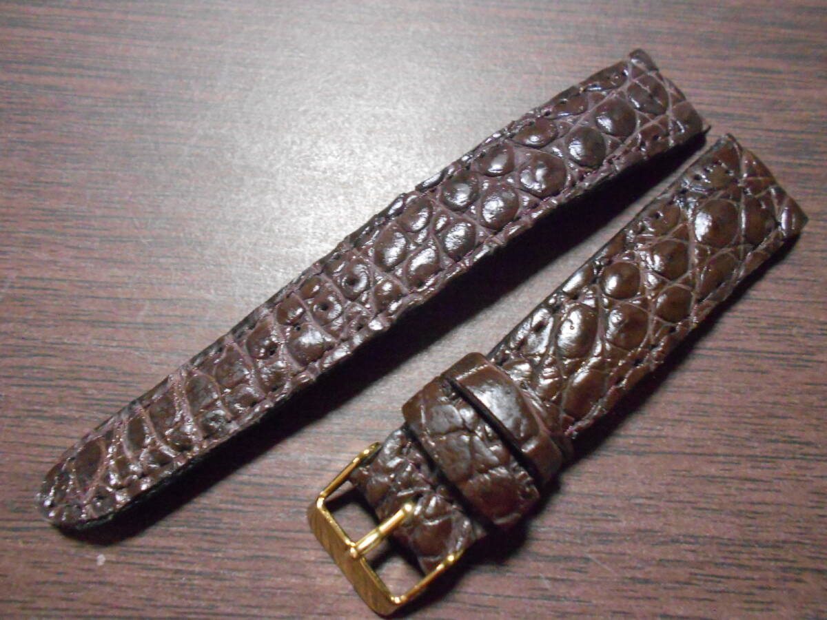 - 18㎜/本革クロコダイル■1点物☆上品質■焦げ茶系色□金尾錠/肚ワニ/粒丸四角鱗☆送込#91