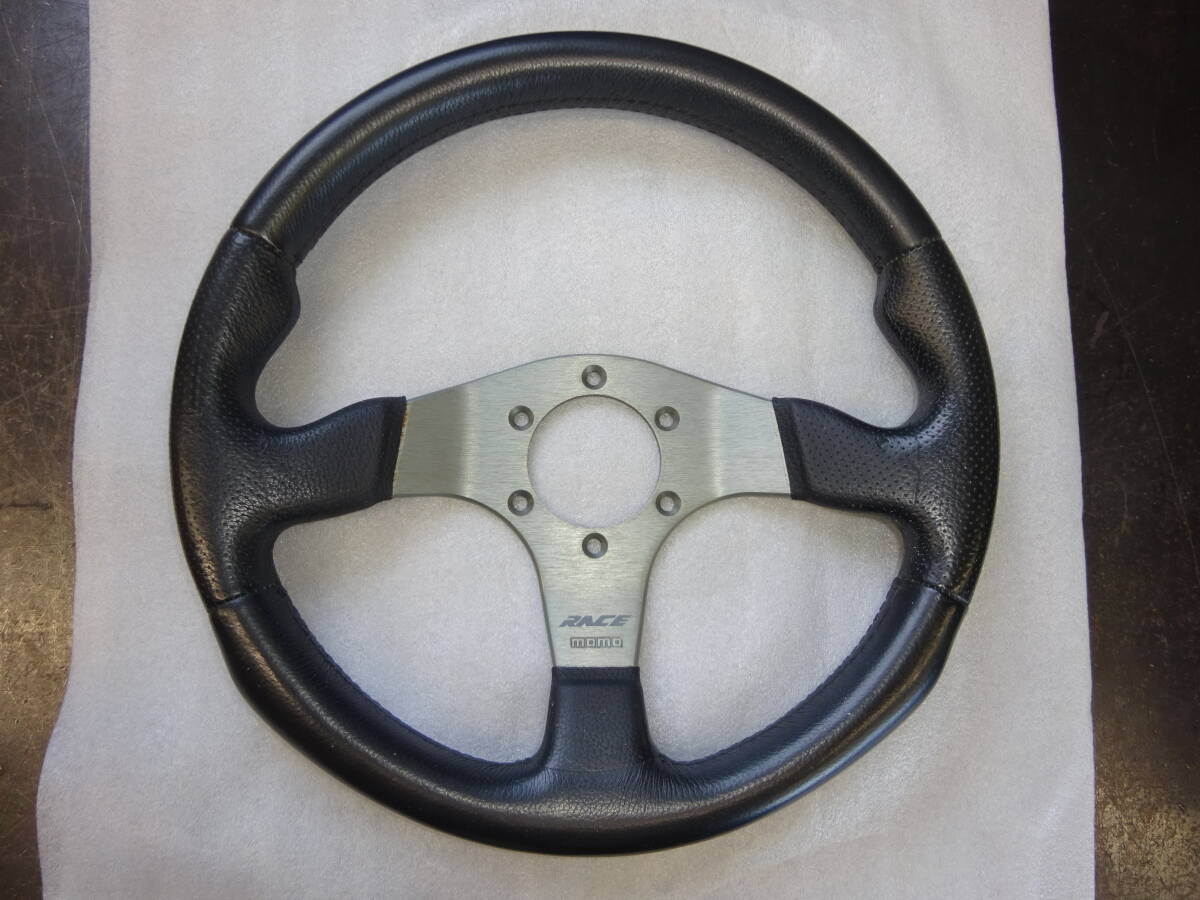 > モモ MOMO momo レース RACE ステアリング 320mm 32パイ MADE IN ITALY ハンドル 定番 モモステ シルバー ブラックレザー