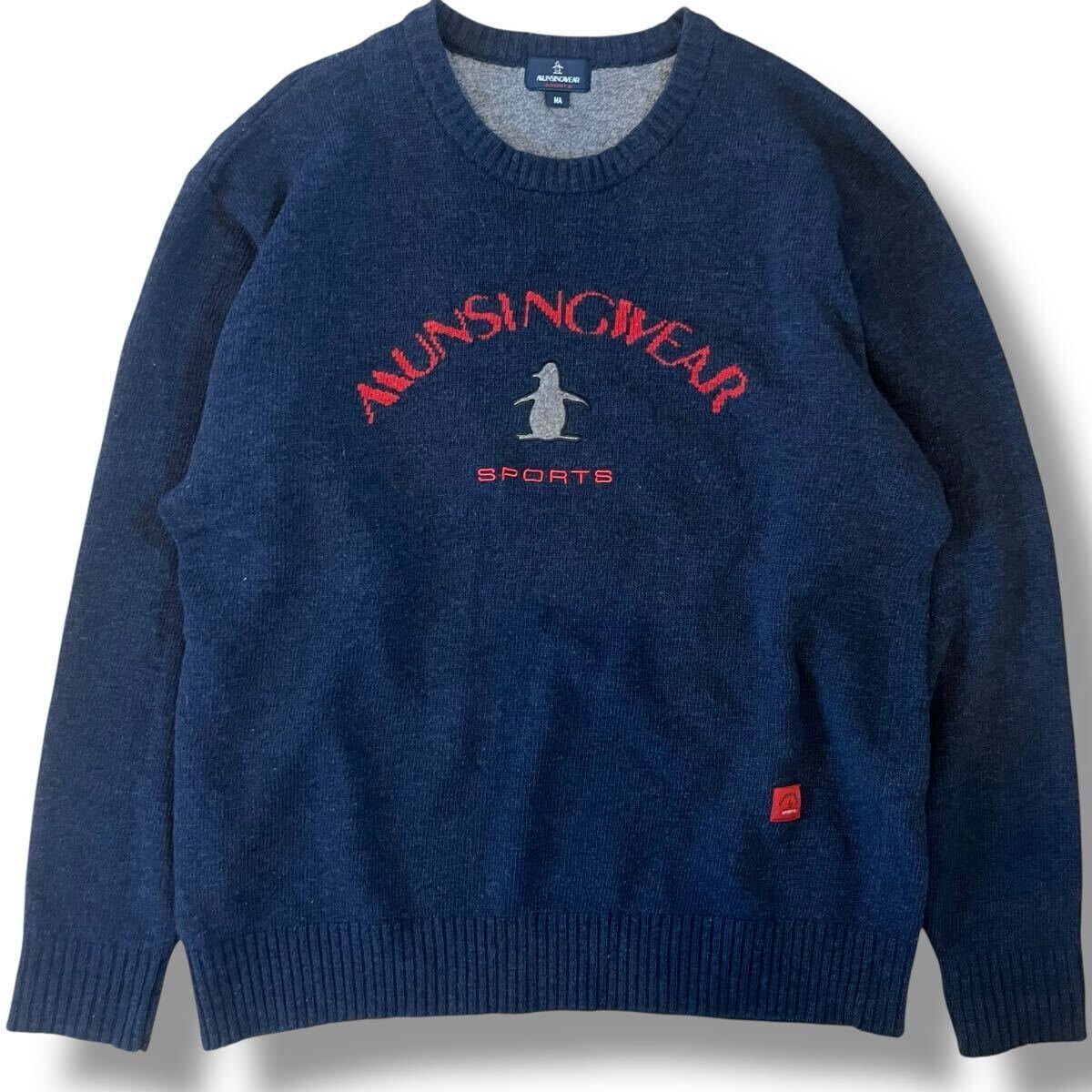 - 美品 マンシングウェア ニット ロゴ 首元フリース ゴルフウェア ネイビー セーター