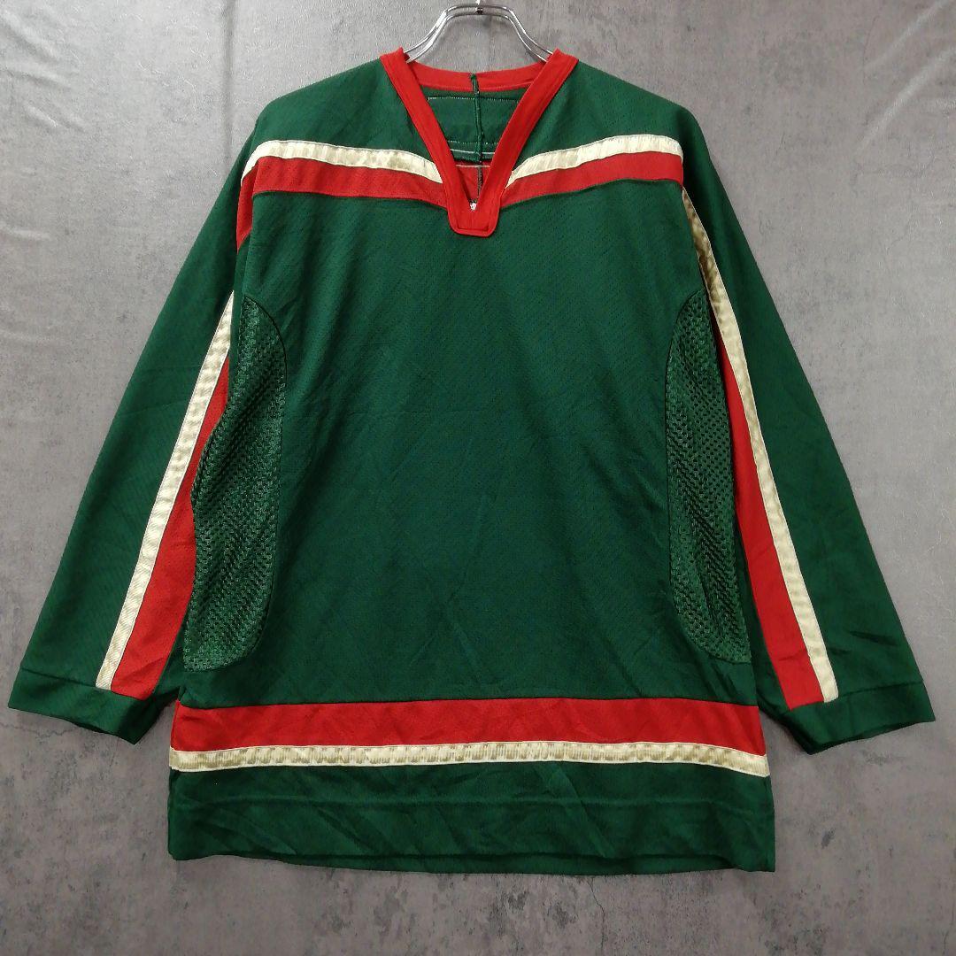 - カナダ ホッケーシャツ 緑赤白 CCM 長袖 WALBURG 9 M【5638】