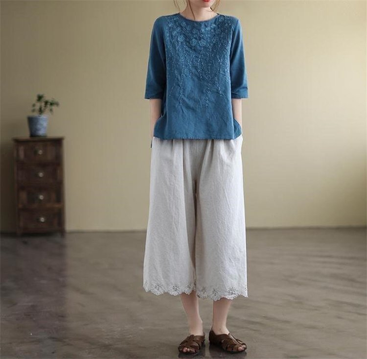 - トップス シャツ 七分袖 シンプル カジュアル レトロ お出かけ レディース 3XL ブルー