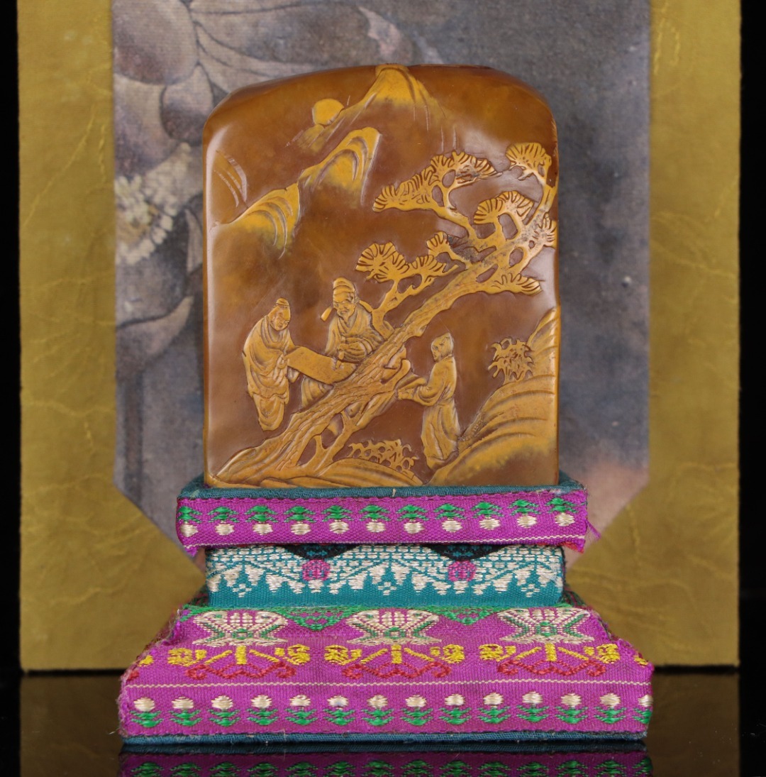 - 旧蔵 【中国近現代篆刻家 黄宝虹】寿山石 田黄石 老人論道 閑章 印鑑 天然石 手彫 篆刻 古印材 極細工 中国古玩 骨董品 古美味 209