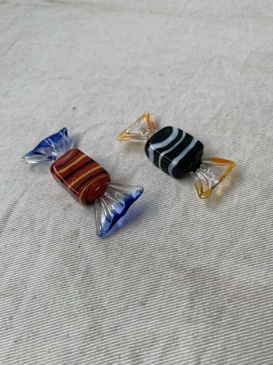 - デッドストック キャンディー型ガラス細工2個セット 昭和レトロアンティークビンテージ古道具インテリアディスプレイコレクションオブジェ