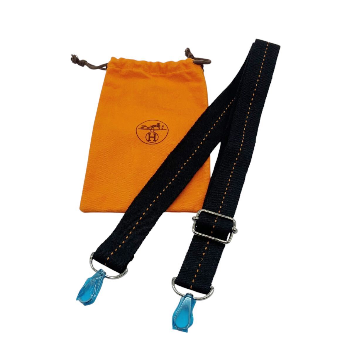> 【新品未使用】エルメス HERMES キャンバス ショルダーストラップ ブラック ストラップのみ バッグ用 シルバー金具