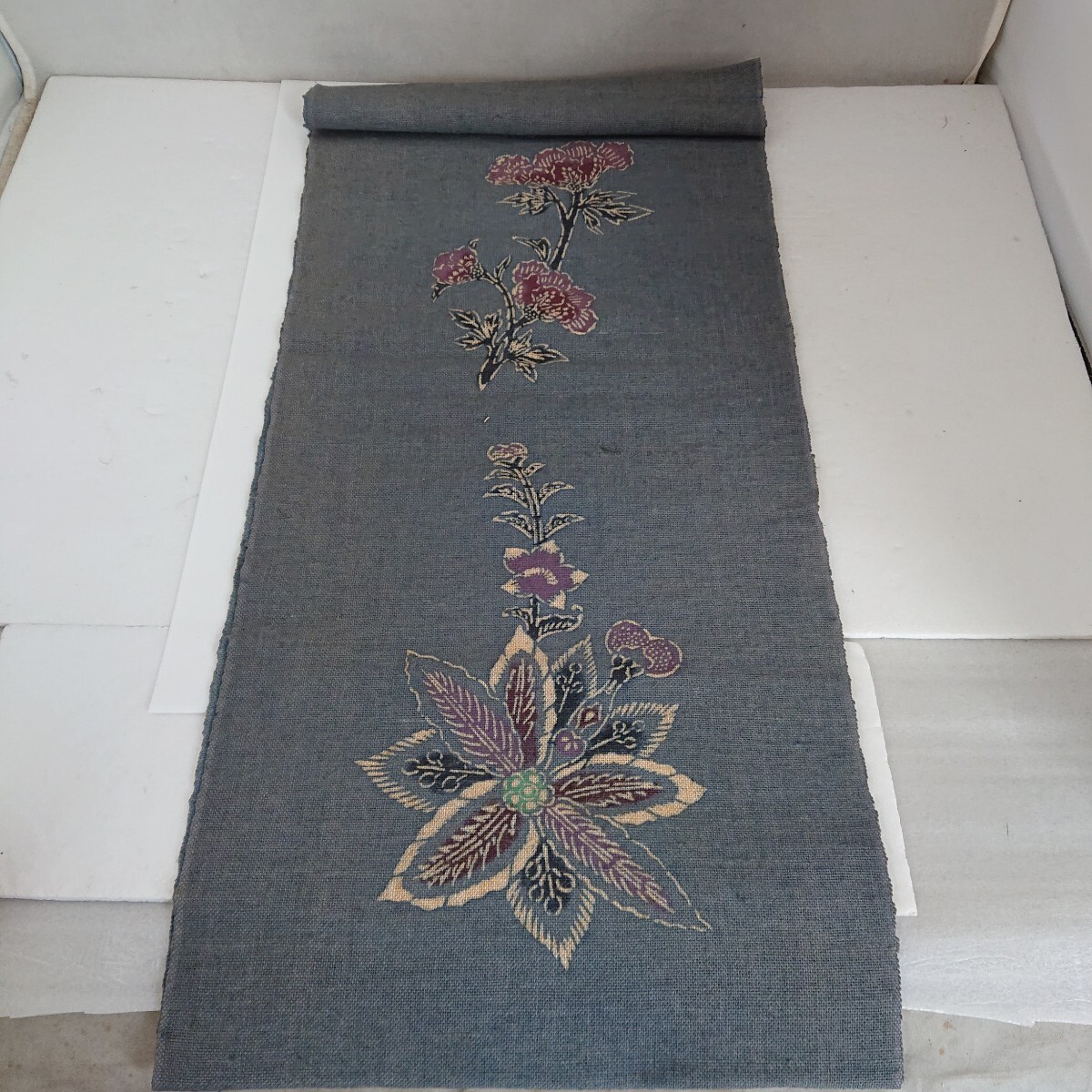 > 【反物】 生地 花柄 ろうけつ染め 全長 約150cm×幅約32.5cm アンティーク 当時物 現状品 ぷらみ 0907 39