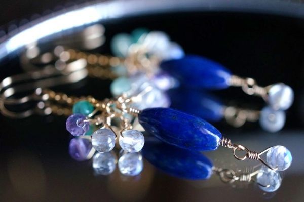 - K14GF ピアス 1644 ラピスラズリとマルチストーン 天然石・パワーストーンピアス 12月の誕生石