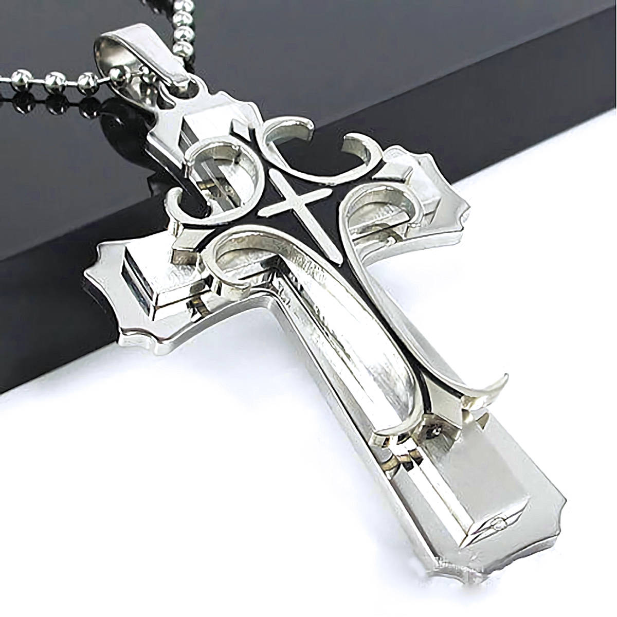 - 新品★送料無料★白銀十字架ヒップホップ ブラックシルバー プラチナ仕上シルバーネックレス 誕生日プレゼント旅行秋祭ギフト国内発送