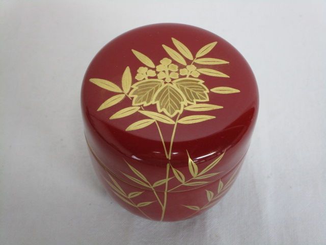 - 雉坂★【 朱漆 桐竹蒔絵 棗 =木製・漆製品= 】茶道具・薄茶器・抹茶入・お稽古用