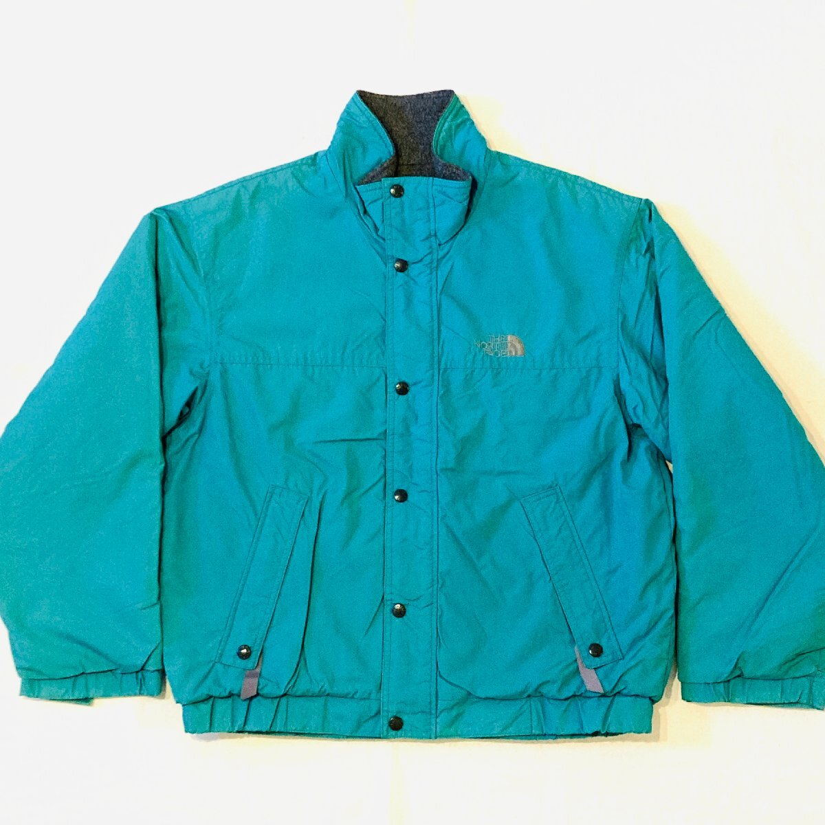 > THENORTHFACE ザノースフェイス ヴィンテージ 日本製 ロゴ 刺繍 ナイロン ジャケット 裏フリース ライトグリーン L