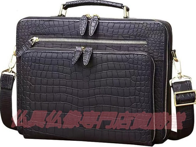 - 【寶勝堂】ワニ革 本革 ビジネス バッグメンズ 2way ショルダー 手提げ バッグ クロコダイル革 ダブルファスナー 2室仕切 ブリーフケース 1