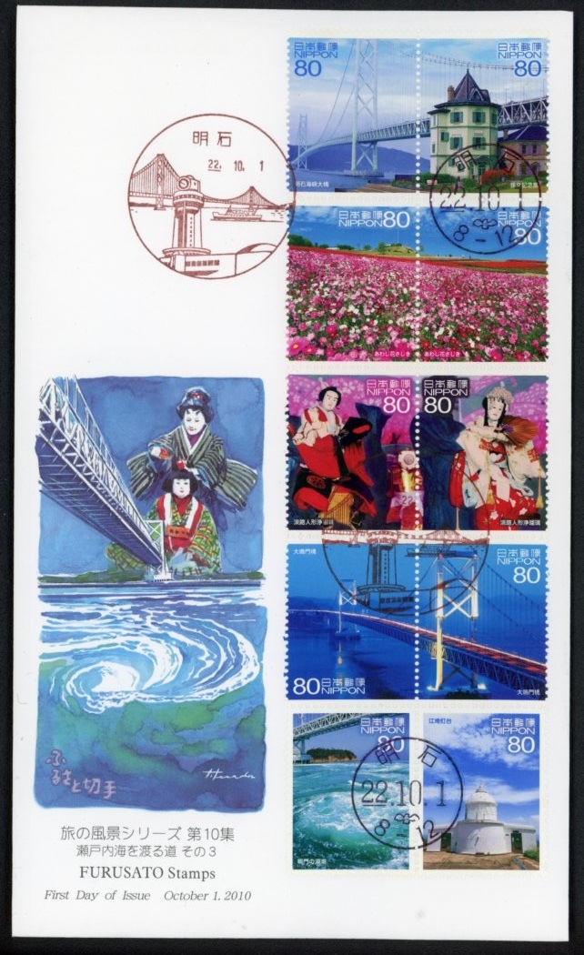 - z71 【FDC】旅の風景シリーズ第10集「瀬戸内海を渡る道 その3」[明石/22.10.1/JPS]
