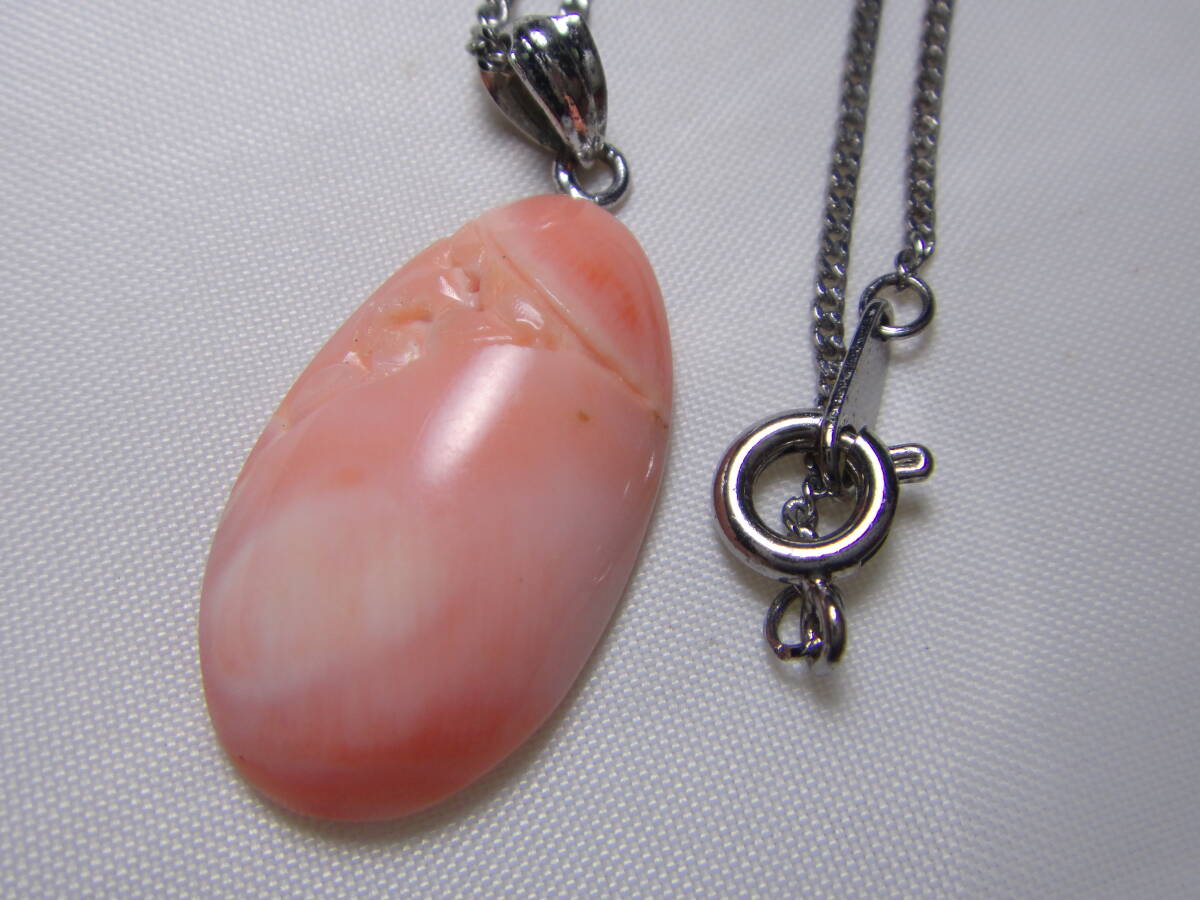 > 本珊瑚 本サンゴ さんご ネックレス 彫刻 洋銀刻印 レトロ アンティーク ヴィンテージ C436