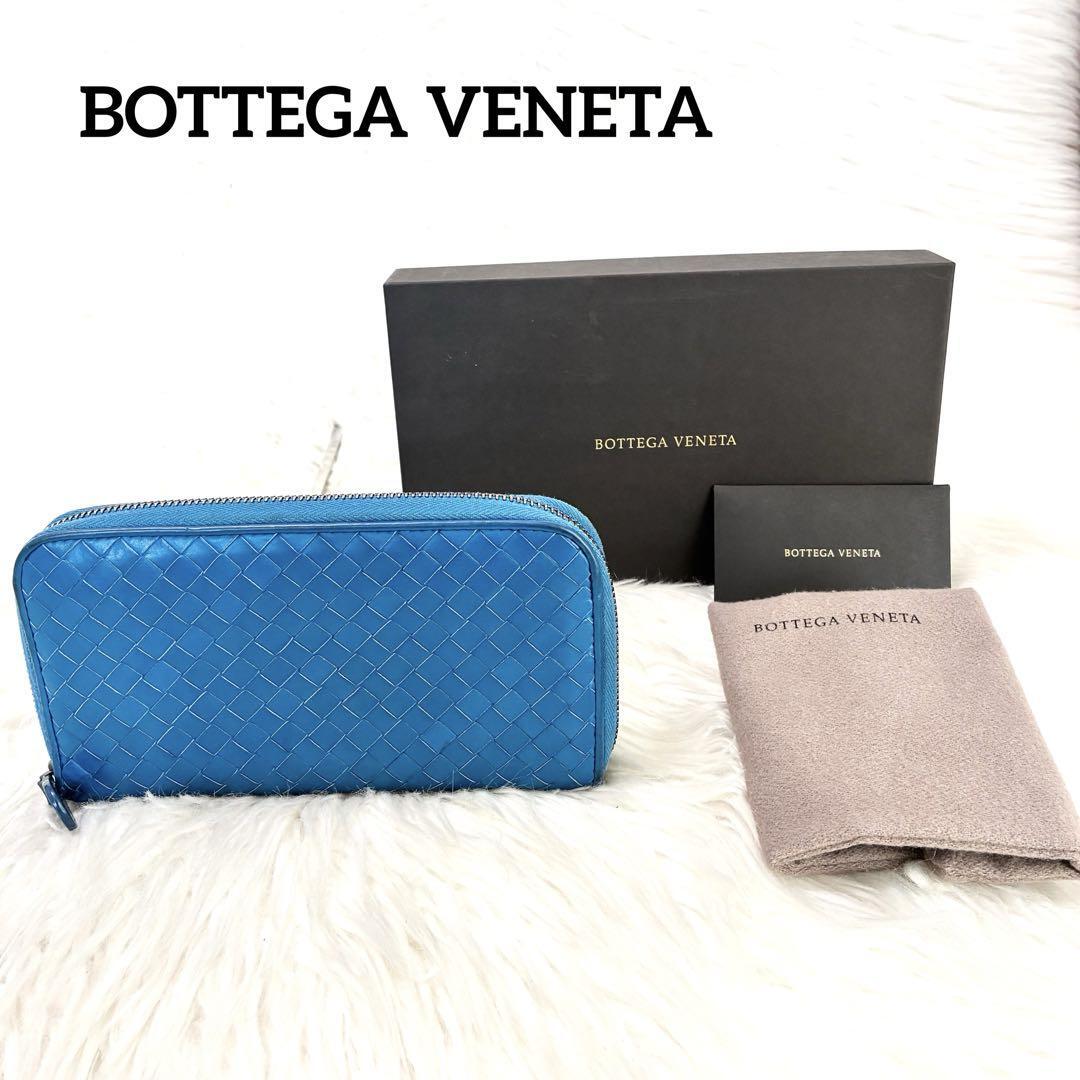 > ボッテガヴェネタ 長財布 イントレチャート ラウンドジップ 青 ブルー 4599 006749012