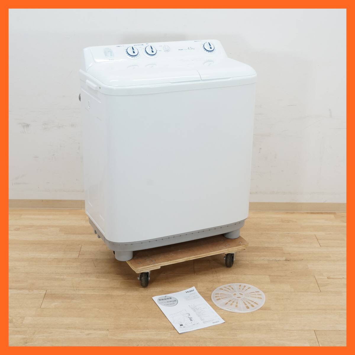 - 前ダ:美品【ハイアール】二槽式 洗濯機 4.5kg JW-W45E 2020年 上開き 分け洗い 切替しやすいつまみデザイン ★送料無料★