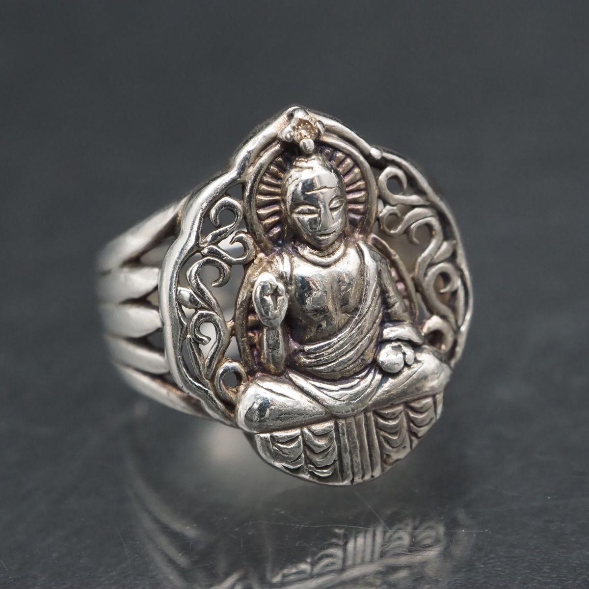 - C830 ヴィンテージ 925刻印 リング 仏 ブッタ 透かし彫り デザイン シルバー 指輪 9号