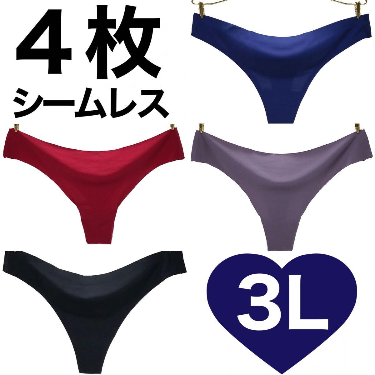 - Tバック シームレスショーツ 4枚セット 3L レッド 赤 ブラック パープル 紫 ブルー 青 パンツ 下着 レディース Tバックショーツ XXL 2XL