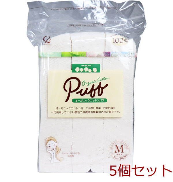- オーガニックコットンパフ Mサイズ 200枚入 5セット