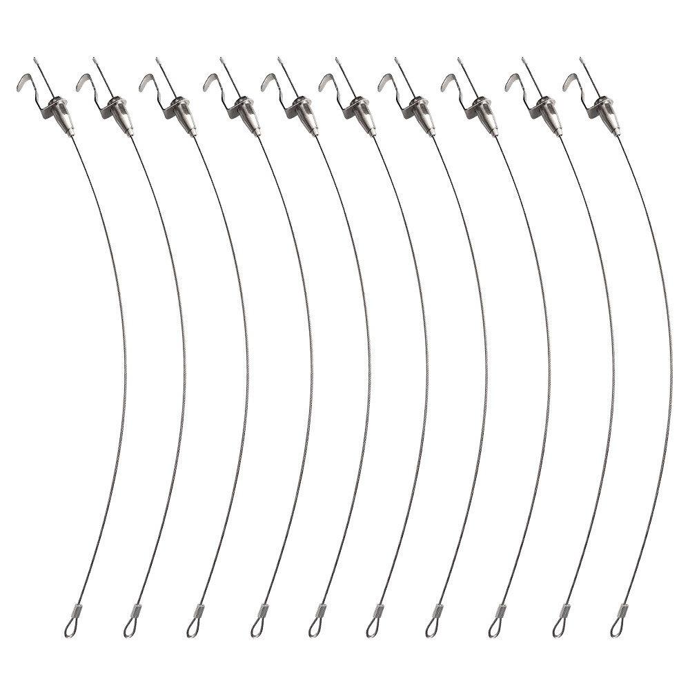 - 額縁 ピクチャーレール ワイヤーフック U型 耐荷重約20kg 自在金具付 径1.5mm (全長0.5m/10本セット)