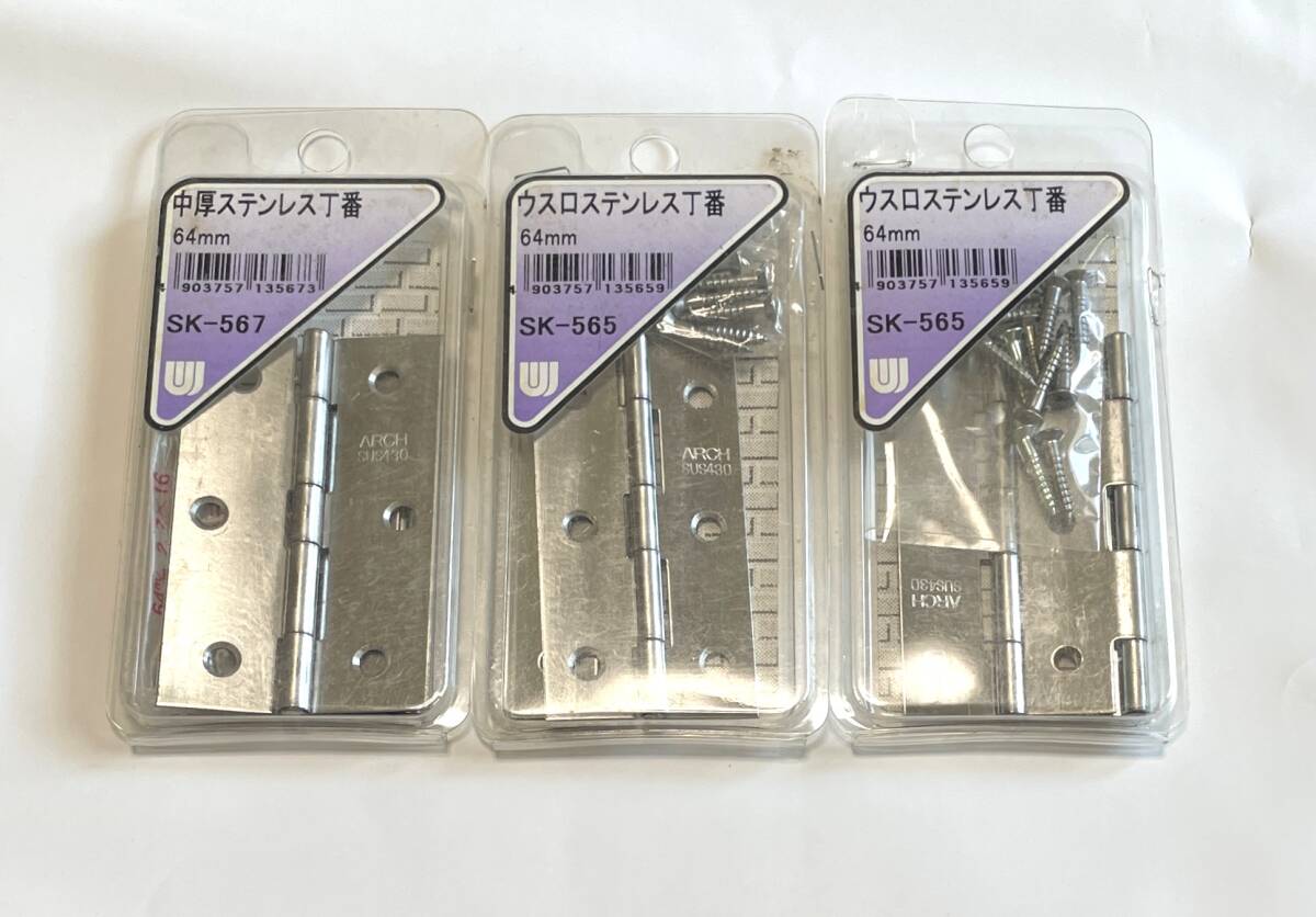 - ステンレス丁番 「うす口64×33mm 2個」「中厚64×40mm 1個」