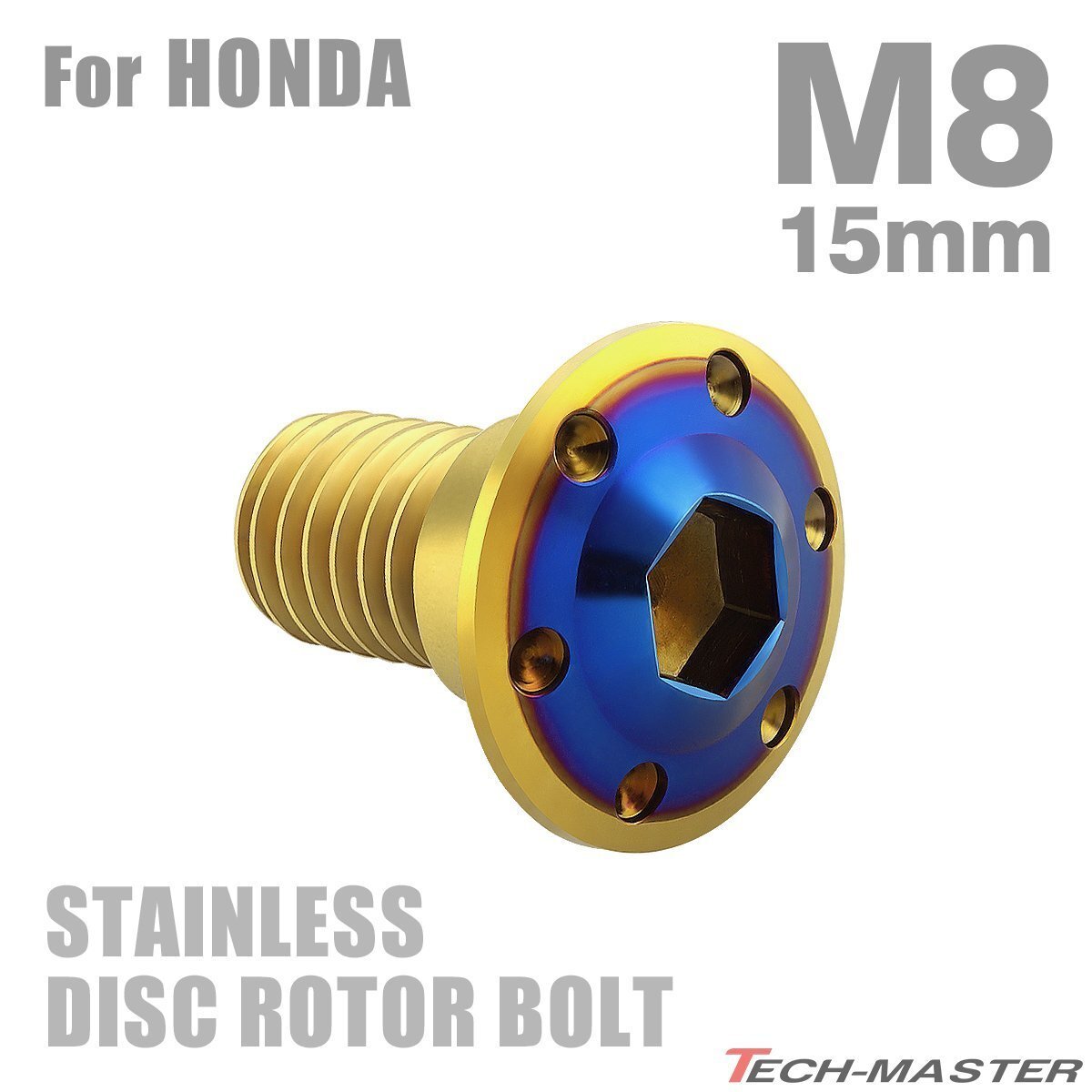 - M8×15mm P1.25 ブレーキディスク ローター ボルト ホールヘッドH-1 ステンレス ホンダ車用 HONDA ゴールド×ブルー 1個 TD0303