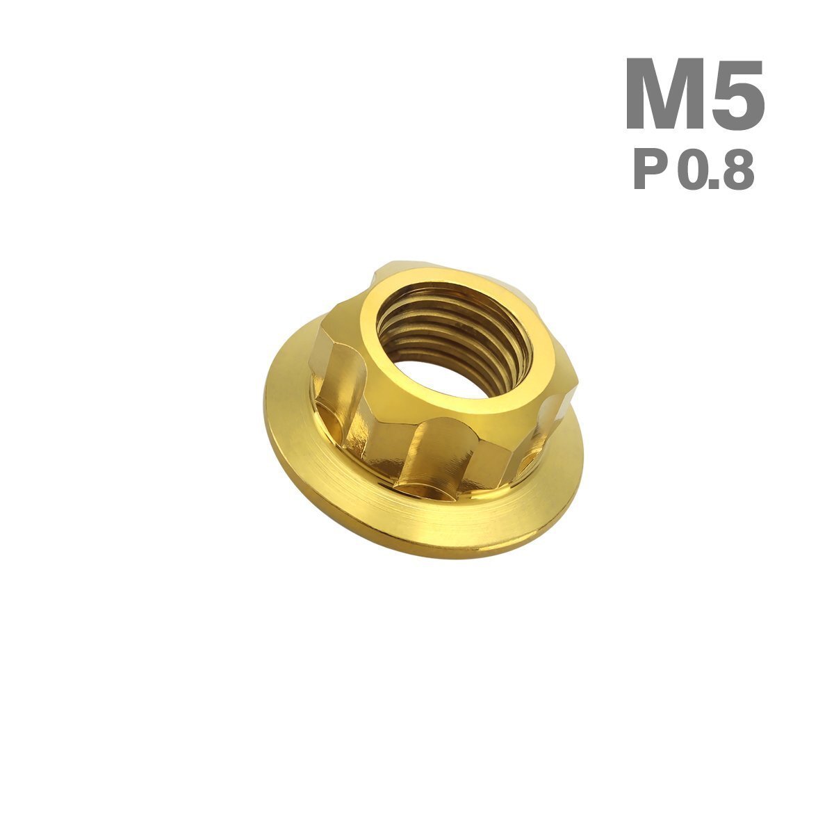 - M5 P0.8 六角ナット フランジ付き スターヘッド ステンレス ゴールド カウル エンジン 車 バイク カスタム 1個 TF0190