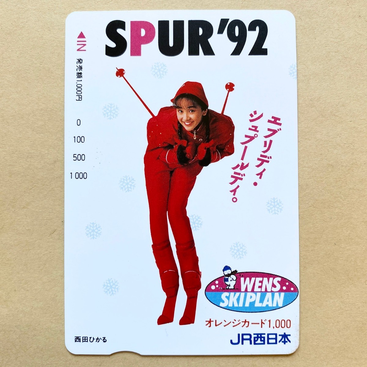 - 【未使用】 オレンジカード 額面1000円 JR西日本 西田ひかる SPUR'92