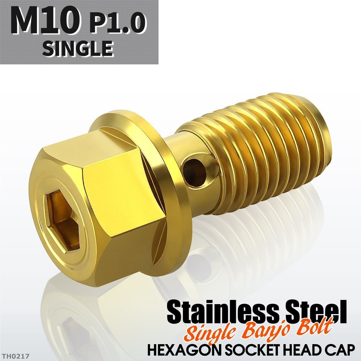 > バンジョーボルト シングル M10 P1.0 ステンレス製 ヘキサゴンヘッド 六角穴付き ゴールドカラー 1個 TH0217