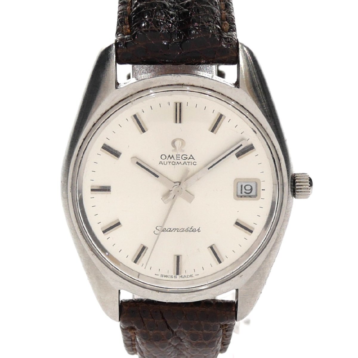 > 1円スタート 稼働品 OMEGA オメガ Seamaster シーマスター デイト 自動巻き オートマチック AT ラウンド SS シルバー文字盤 メンズ 腕時計