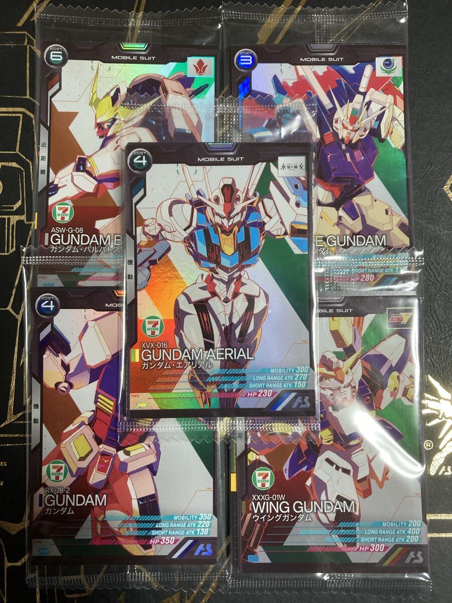 - ガンダムアーセナルベース プロモ ウイングガンダム エアリアル バルバトス ガンダム エールストライク 5枚セット セブンイレブン