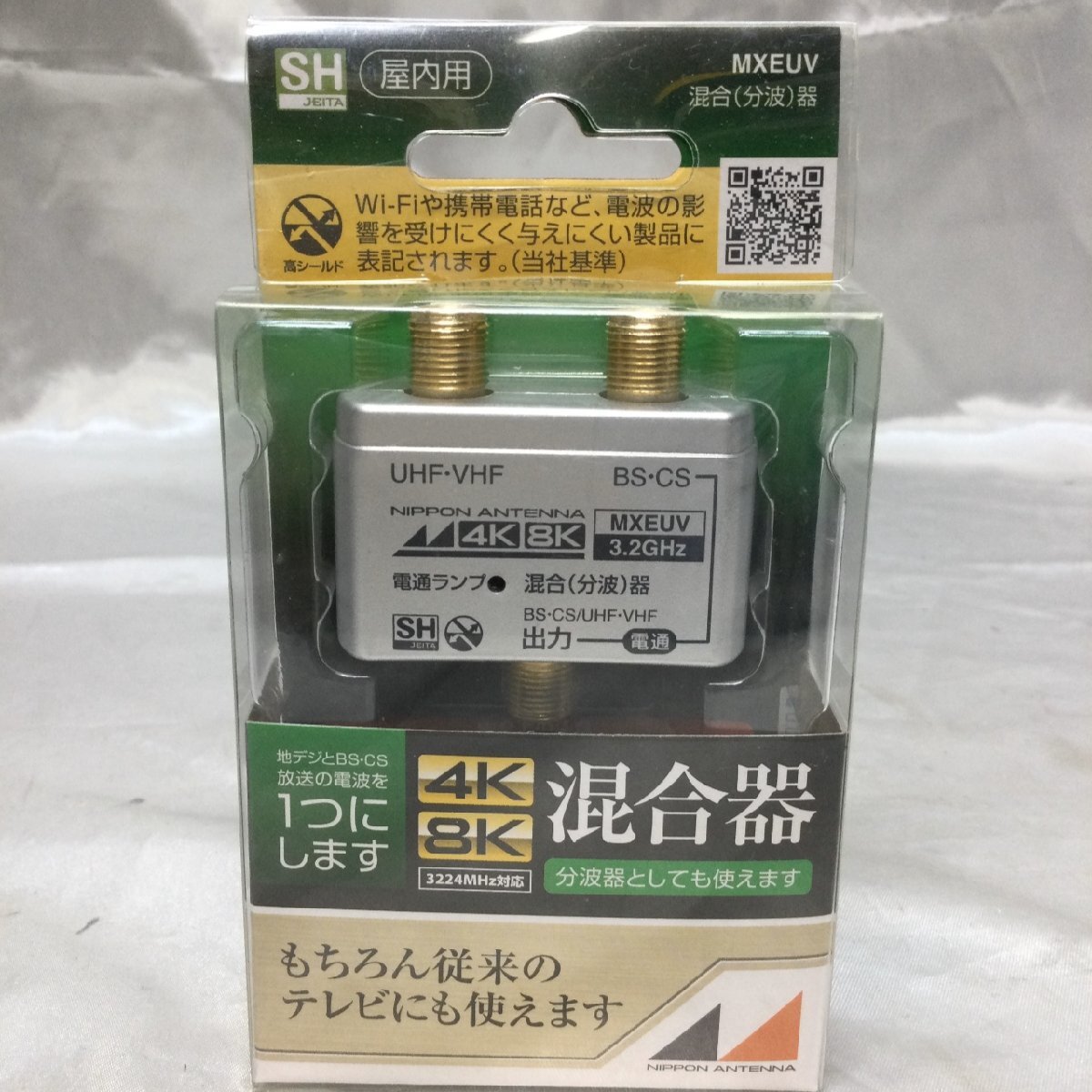 > 【未使用品/KU】日本アンテナ 屋内用 MXEUV 混合(分波)器 シールド型 4K8K対応 出力端子-BS・CS入力端子間電流通過型 MZ0908