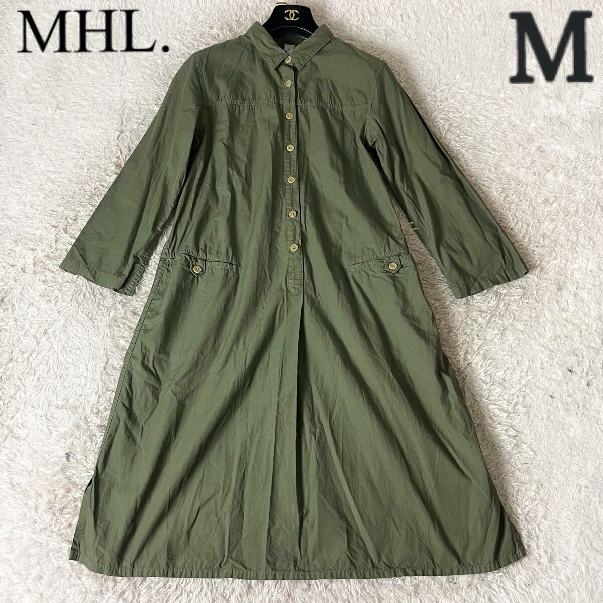 > MARGARET HOWELL MHL マーガレットハウエル MHL シャツワンピース ロングワンピース Aライン フレア ポケット ベルト カーキ M