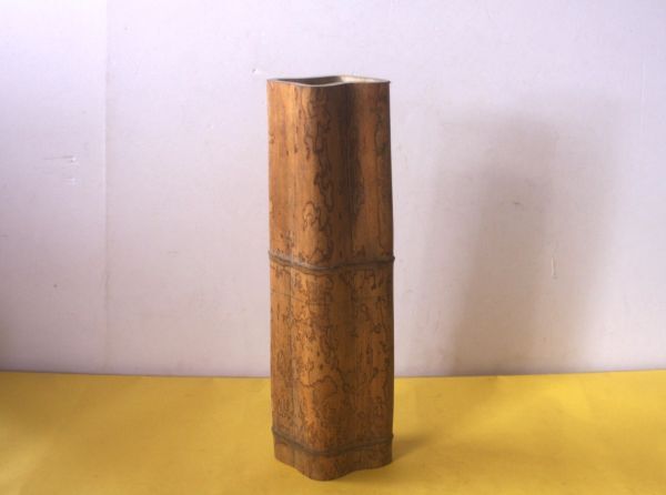 - 竹製 花入れ 花器 床の間 飾り 珍しい形 珍しい模様の竹 /20N9-13